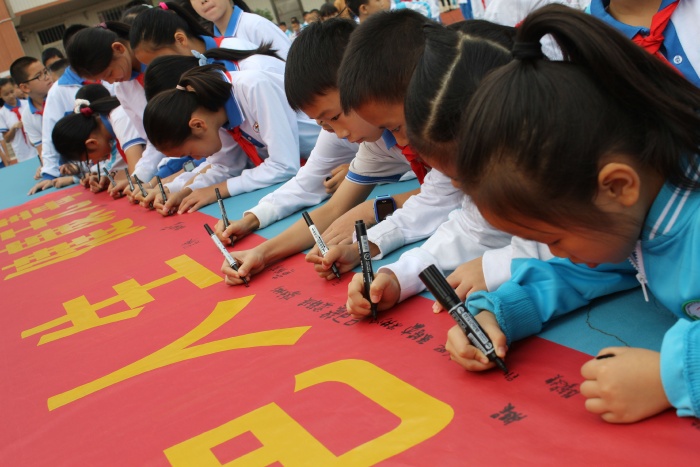 活動在莊嚴的國歌聲中拉開序幕。五(4)中隊的翁俊宇同學用列數(shù)據(jù)和具體案例向全體師生介紹目前毒品對青少年的危害情況,并指出當前隊員們正處于生理和心理的成長期和突變期,容易在空虛無聊、情緒低落、遇到挫折的時候受到毒品的侵害,呼吁全體師生要認清毒品的危害,自覺主動拒絕毒品,不以好奇心為由僥幸嘗試。同時,要樹立正確的人生觀,不盲目追求享受,尋求刺激,趕時髦、攀比,增強抵抗力。隨后,全體師生在學校大隊輔導員阮結連的帶領下宣誓:珍惜美好年華,從我做起,從現(xiàn)在做起,從杜絕吸煙做起,終身遠離毒品、拒絕毒品。各中隊代表在“健康人生,綠色無毒”橫幅上簽名,表決心——珍愛生命,遠離毒品。