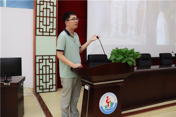 他們結合圖片和短視頻,還原了那段不太久遠的記憶,再現(xiàn)了沖鋒在前的“逆行者”及披星戴月的“守護者”的動人身影,讓全場師生為之肅然起敬。學生代表向他們贈送了抗疫作品。