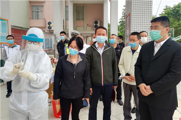 座談會(huì)前,市委副書記、區(qū)黨工委書記陳文鋒還察看了火炬區(qū)一中校門口快速測(cè)溫儀通道,與來(lái)校為畢業(yè)班學(xué)生進(jìn)行核酸測(cè)試的工作人員進(jìn)行交談。同時(shí)他還來(lái)到學(xué)校擴(kuò)建工地,詳細(xì)了解擴(kuò)建工程的進(jìn)展情況。
