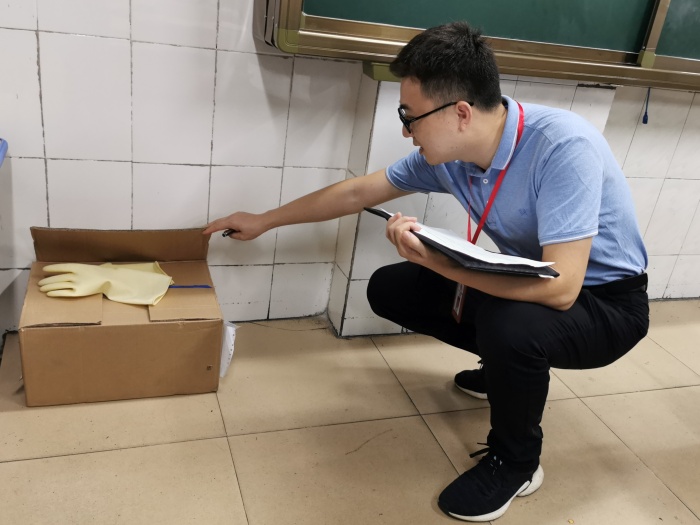 張立超督學(xué)首先認(rèn)真查看了學(xué)校常態(tài)化疫情防控情況下的門禁制度,對落實情況非常滿意,聽取了朱德友校長關(guān)于校園內(nèi)安全工作及疫情防控落實情況的介紹。他還走進(jìn)教室實地查看了教室里防疫物資的準(zhǔn)備情況,重點強(qiáng)調(diào)了教室里消毒粉的存放,一定要注意存儲安全,不能讓學(xué)生接觸到。