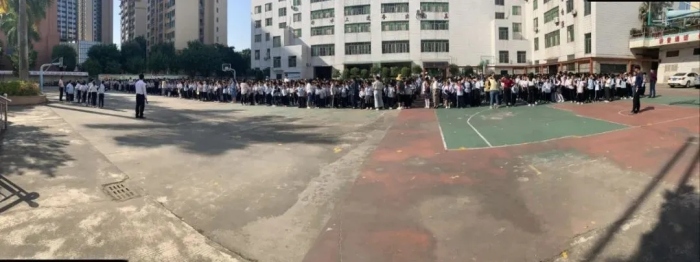 11月9日下午14點(diǎn)30分演練開始,隨著警報(bào)的響起,各位老師立即到達(dá)指定崗位,確保演練過程的安全,并指導(dǎo)學(xué)生有序快速疏散。各班班主任帶領(lǐng)學(xué)生根據(jù)演練方案中規(guī)定的路線,彎著腰,用濕紙巾或手等捂住口鼻,沿著學(xué)校指定樓梯口快速疏散,有序撤離到學(xué)校操場的安全地帶。