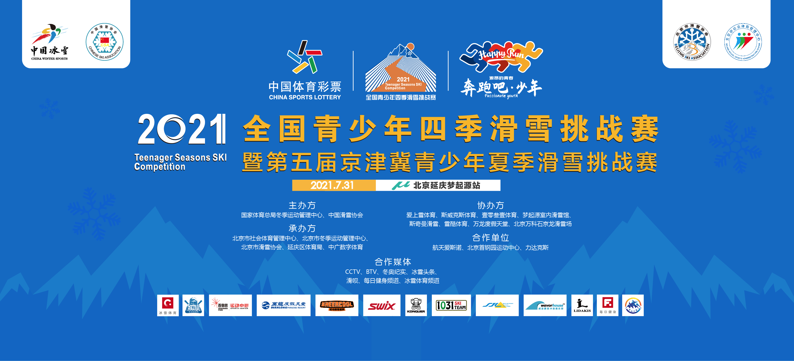 協(xié)辦單位:愛上雪體育,斯威克斯體育,壹零叁壹體育,夢(mèng)起源室內(nèi)滑雪館,斯奇曼滑雪,雪酷體育,萬龍度假天堂,北京萬科石京龍滑雪場(chǎng)