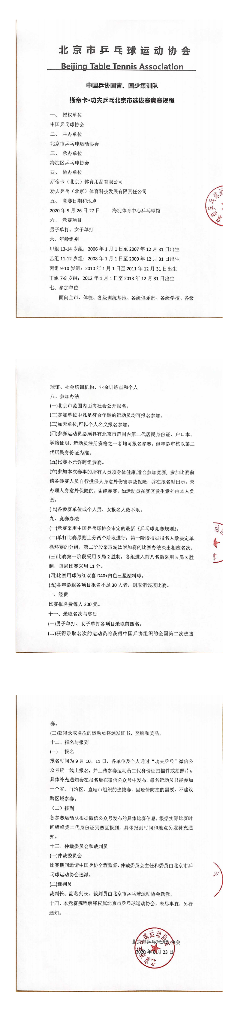 中國乒協(xié)國青、國少集訓隊斯帝卡·功夫乒乓北京市選拔賽