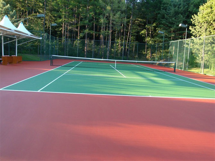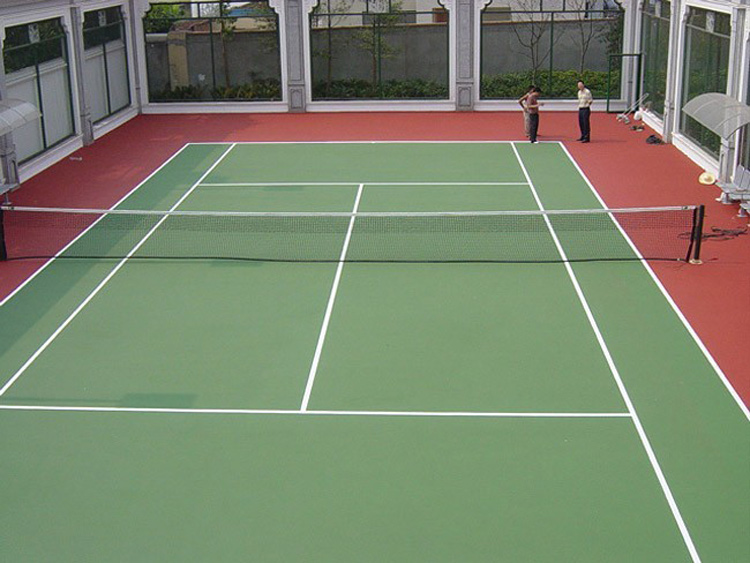 材料簡介:丙烯酸樹脂球場(彈性丙烯酸網(wǎng)球場,硬地丙烯酸網(wǎng)球場)適用于專業(yè)選手比賽和訓(xùn)練使用,由100%純丙烯酸乳液加入進(jìn)口色料及助劑制成,完全符合環(huán)保要求,具有較好的耐磨性能,防水、防曬、防滑、可鋪設(shè)于室內(nèi)外瀝青或水泥面上??梢勒占由凹八呐浔日{(diào)整表面糙度。中級性能產(chǎn)品。