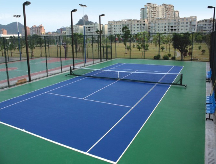 彈性丙烯酸材料簡介材料簡介:丙烯酸樹脂球場(彈性丙烯酸網(wǎng)球場,硬地丙烯酸網(wǎng)球場)適用于專業(yè)選手比賽和訓(xùn)練使用,由100%純丙烯酸乳液加入進(jìn)口色料及助劑制成,完全符合環(huán)保要求,具有較好的耐磨性能,防水、防曬、防滑、可鋪設(shè)于室內(nèi)外瀝青或水泥面上。可依照加砂及水的配比調(diào)整表面糙度。中級性能產(chǎn)品。產(chǎn)品特點(diǎn):原材料全部選用世界知名品牌,并采用先進(jìn)技術(shù)制成。具有良好的透氣性和適中的硬度。具有良好的耐水、耐候及耐磨性。多種顏色可供選擇。應(yīng)用范圍:室內(nèi)、外籃球場、網(wǎng)球場、羽毛球場等施工工序:打磨場地...