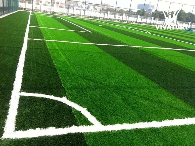 1.足球場(chǎng)場(chǎng)地整體平整度要一致,不能有明顯的高低之差。 人造草坪鋪裝整體方向、草絲方向要相同。